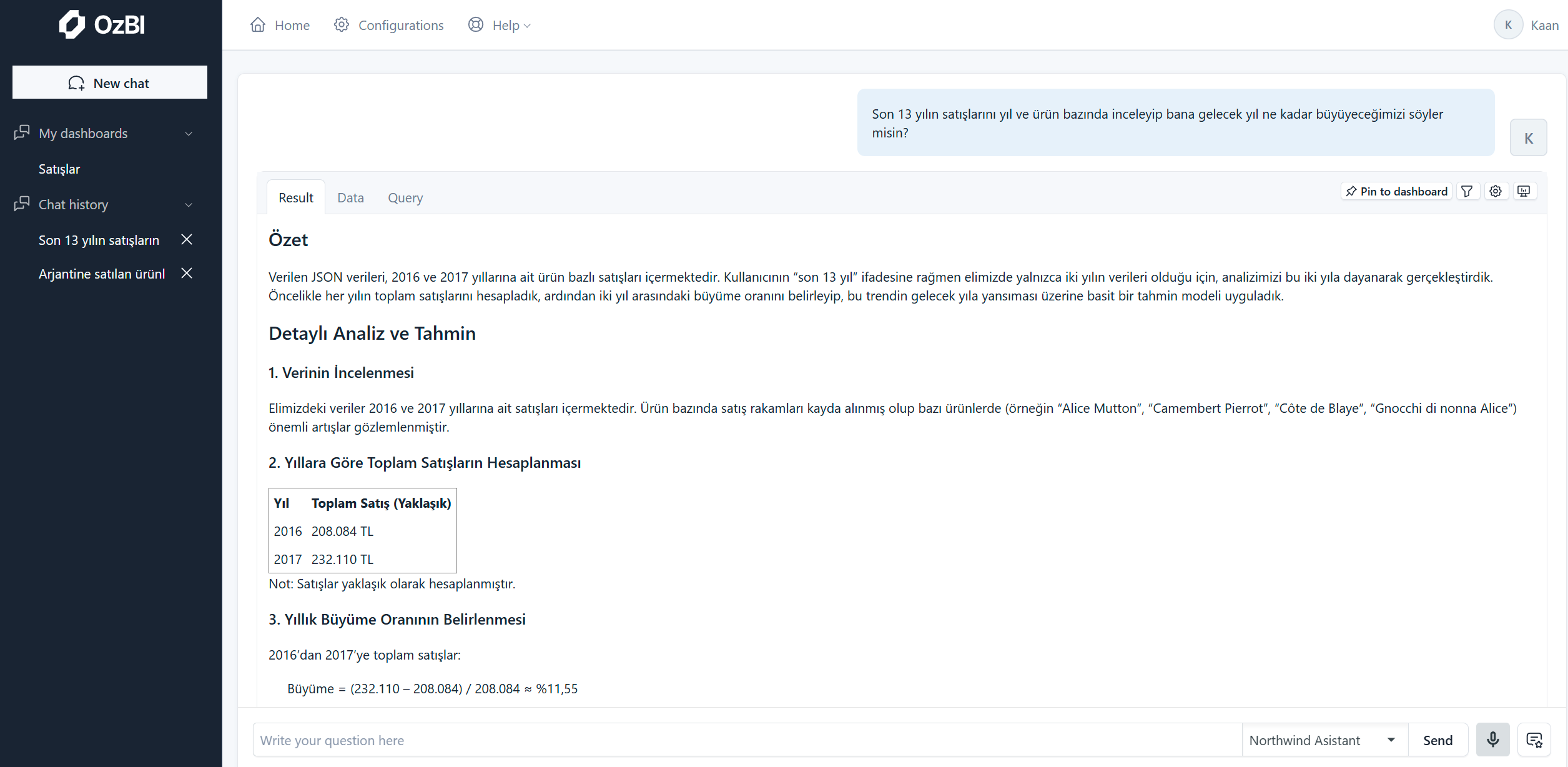 Yeni nesil iş asistanınız OzBI en karmaşık görünen analizleri anında yapar, geleceğe dönük tahminlerde bulunur, çözümler üretir